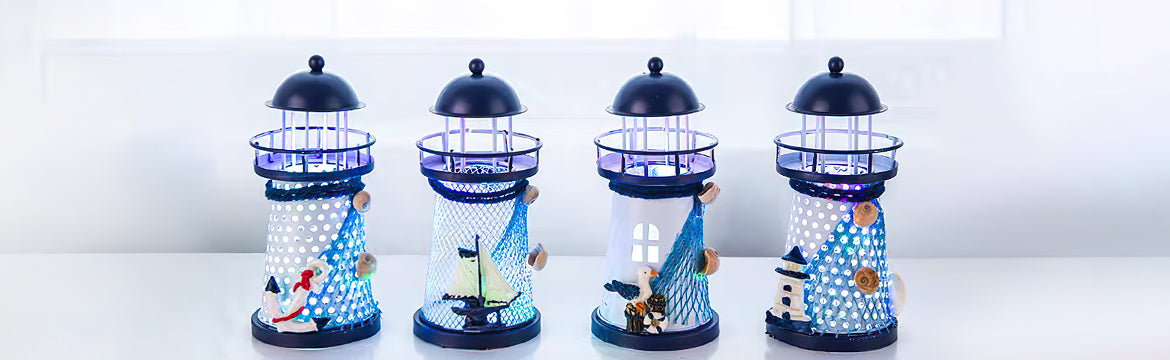 These mediterranean style lighthouses elevate your existing beach themed decor and create a fantastic light display, handcrafted from iron and adorned with seashells, conch & fishing net to give it an authentic look.